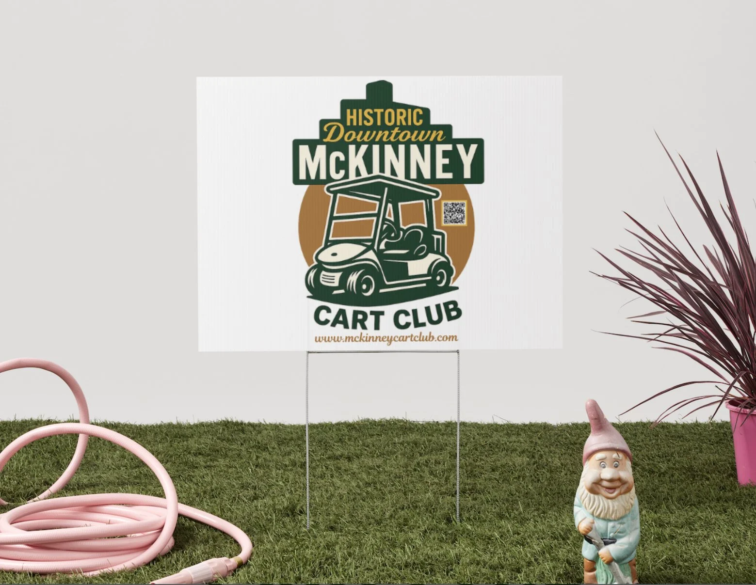 Everything you need to ride in style and show your cart pride! From decals and yard signs to seasonal shirts and personalized street signs, our essentials help you stay connected, celebrate downtown McKinney, and rep your club wherever you go.